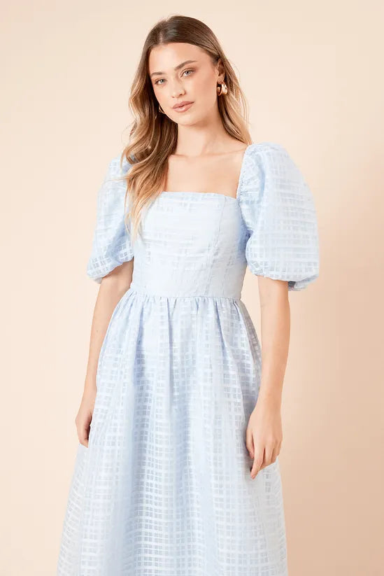 DP Luxe Seersucker Square Neck Midi Dress